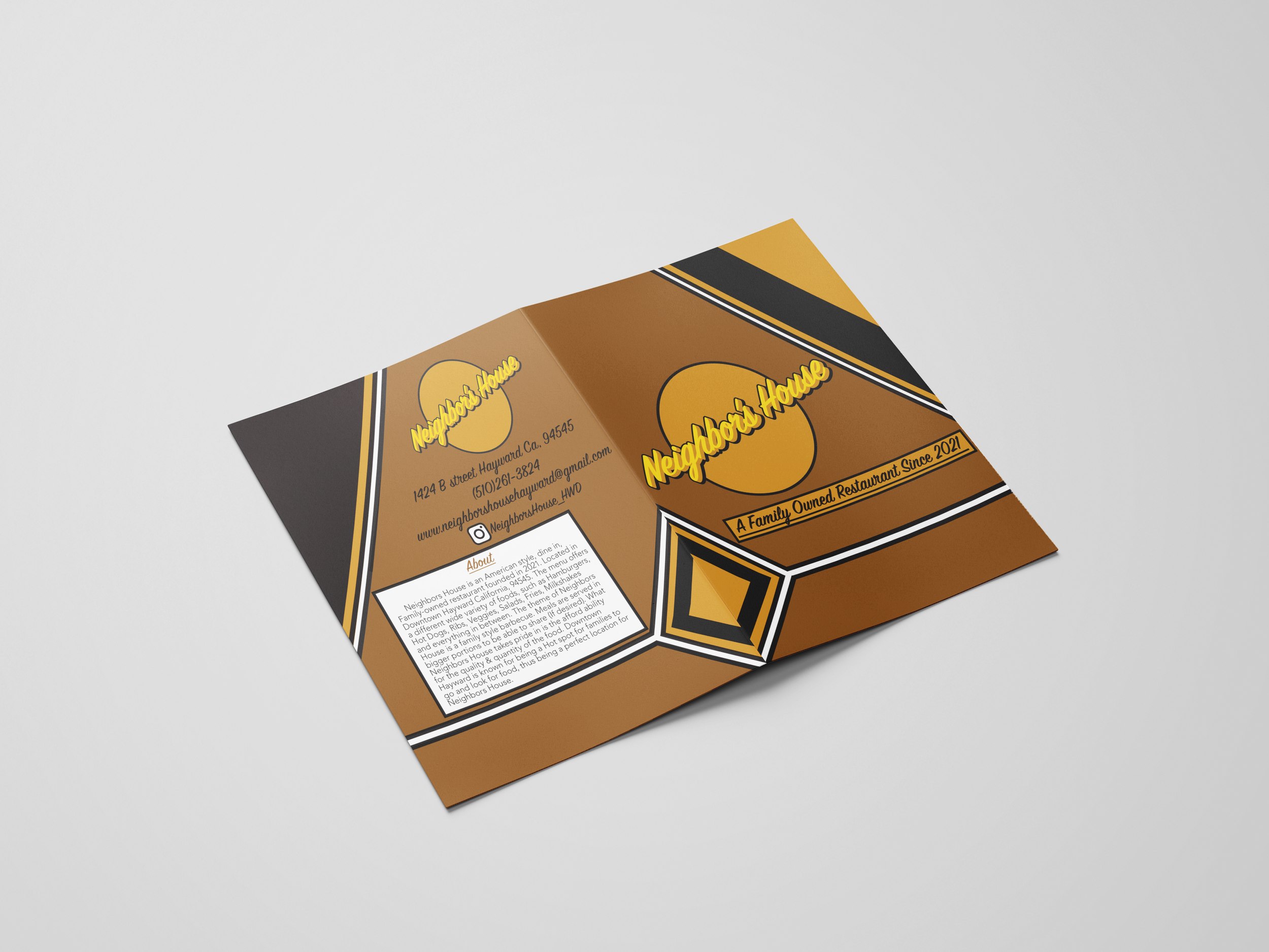Neighbor’s HouseThis design was made for Neighbor’s House, an americanized diner . The approach went with choices that were popular traditional BBQ foods. Neighbor’s house also has a rich story of family thus the usage of comforting colors.